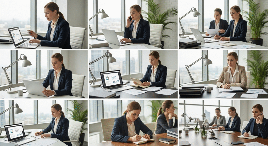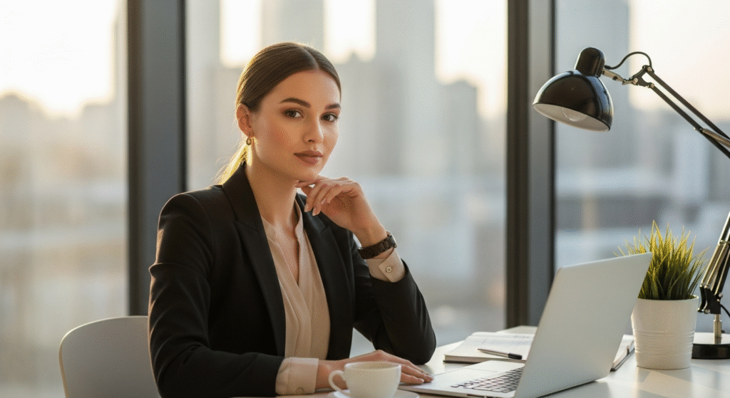 The business women aesthetic extends beyond clothing and accessories into workspaces. A desk setup that matches a refined style creates a professional atmosphere and sets the tone for productivity. Clean lines, organized layouts, and neutral tones are common choices. Many women prefer minimalist desks with only essentials like a laptop, notebook, and pen, paired with a few decorative touches such as a small plant or framed photo. This setup reflects discipline while adding warmth.
